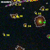 Object #4242 x,y = (2879, 1800) RA, Dec = (00:32:09.672, 18:07:10.92) = (8.04030, 18.11970) BPZ = 0.338 [0.244--0.459] type = 5.80 (Sbc_B10 - ES0_B10) chisq2 = 0.10 ODDS = 0.67 z_cluster = 0.396