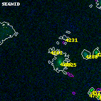 Object #4281 x,y = (3953, 1783) RA, Dec = (00:32:05.136, 18:07:09.84) = (8.02140, 18.11940) BPZ = 0.699 [0.284--4.056] type = 7.00 (Scd_B10) chisq2 = 0.02 ODDS = 0.15 z_cluster = 0.396