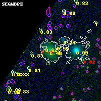 Object #43 x,y = (1974, 4841) RA, Dec = (00:32:13.464, 18:10:13.44) = (8.05610, 18.17040) BPZ = 0.398 [0.305--0.837] type = 5.10 (ES0_B10 - Sbc_B10) chisq2 = 0.00 ODDS = 0.60 z_cluster = 0.396