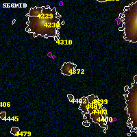 Object #4372 x,y = (2084, 1723) RA, Dec = (00:32:13.008, 18:07:06.24) = (8.05420, 18.11840) BPZ = 0.695 [0.454--0.866] type = 8.00 (SB1_B10) chisq2 = 0.05 ODDS = 0.58 z_cluster = 0.396