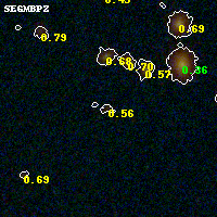 Object #4405 x,y = (3239, 1679) RA, Dec = (00:32:08.160, 18:07:03.72) = (8.03400, 18.11770) BPZ = 0.561 [0.070--3.294] type = 9.50 (SB3_B10 - SB2_B10) chisq2 = 0.41 ODDS = 0.16 z_cluster = 0.396