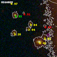 Object #4457 x,y = (2342, 1648) RA, Dec = (00:32:11.928, 18:07:01.56) = (8.04970, 18.11710) BPZ = 3.935 [0.330--4.148] type = 8.60 (SB2_B10 - SB1_B10) chisq2 = 0.25 ODDS = 0.45 z_cluster = 0.396