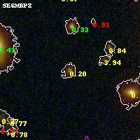 Object #4473 x,y = (2293, 1632) RA, Dec = (00:32:12.120, 18:07:00.84) = (8.05050, 18.11690) BPZ = 0.195 [0.109--0.701] type = 4.00 (Ell4_A_0) chisq2 = 0.28 ODDS = 0.62 z_cluster = 0.396
