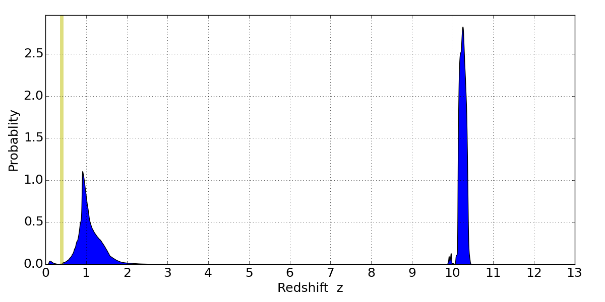 Best viewed in a wide browser window (1200 pixels or more). Download SED & P(z) plots to view larger versions.