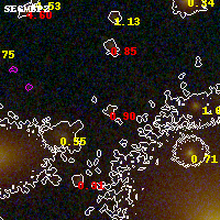 Object #4623 x,y = (2773, 2150) RA, Dec = (00:32:10.104, 18:07:31.80) = (8.04210, 18.12550) BPZ = 0.903 [0.525--4.754] type = 9.50 (SB3_B10 - SB2_B10) chisq2 = 1.64 ODDS = 0.21 z_cluster = 0.396