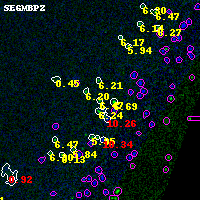 Object #4747 x,y = (3877, 1450) RA, Dec = (00:32:05.472, 18:06:49.68) = (8.02280, 18.11380) BPZ = 6.469 [6.186--8.923] type = 9.00 (SB2_B10) chisq2 = 0.00 ODDS = 0.44 z_cluster = 0.396