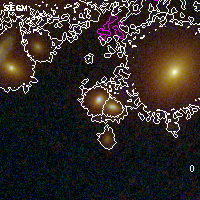 Object #4758 x,y = (3044, 1368) RA, Dec = (00:32:08.976, 18:06:45.00) = (8.03740, 18.11250) BPZ = 0.427 [0.292--0.499] type = 6.30 (Sbc_B10 - Scd_B10) chisq2 = 0.02 ODDS = 0.64 z_cluster = 0.396