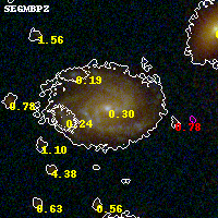 Object #4833 x,y = (2229, 1357) RA, Dec = (00:32:12.408, 18:06:44.28) = (8.05170, 18.11230) BPZ = 0.302 [0.242--0.415] type = 7.50 (SB1_B10 - Scd_B10) chisq2 = 0.07 ODDS = 0.82 z_cluster = 0.396