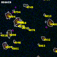 Object #4876 x,y = (1837, 1367) RA, Dec = (00:32:14.040, 18:06:45.00) = (8.05850, 18.11250) BPZ = 0.780 [0.115--4.446] type = 10.50 (SB11_A_0_l - SB3_B10) chisq2 = 1.95 ODDS = 0.15 z_cluster = 0.396