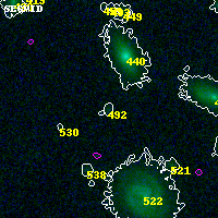 Object #492 x,y = (2180, 4164) RA, Dec = (00:32:12.600, 18:09:32.76) = (8.05250, 18.15910) BPZ = 0.669 [0.305--1.794] type = 8.60 (SB2_B10 - SB1_B10) chisq2 = 0.03 ODDS = 0.16 z_cluster = 0.396