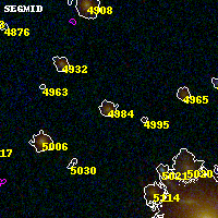 Object #4984 x,y = (1932, 1292) RA, Dec = (00:32:13.656, 18:06:40.32) = (8.05690, 18.11120) BPZ = 0.780 [0.699--0.907] type = 8.40 (SB1_B10 - SB2_B10) chisq2 = 0.51 ODDS = 0.70 z_cluster = 0.396