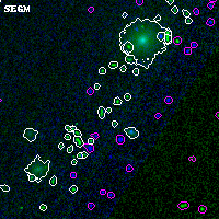 Object #5056 x,y = (3742, 1222) RA, Dec = (00:32:06.024, 18:06:36.00) = (8.02510, 18.11000) BPZ = 6.218 [5.912--8.989] type = 8.90 (SB2_B10 - SB1_B10) chisq2 = 0.00 ODDS = 0.42 z_cluster = 0.396