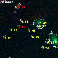 Object #5079 x,y = (2895, 1188) RA, Dec = (00:32:09.600, 18:06:34.20) = (8.04000, 18.10950) BPZ = 0.477 [0.209--4.198] type = 7.20 (Scd_B10 - SB1_B10) chisq2 = 0.25 ODDS = 0.13 z_cluster = 0.396