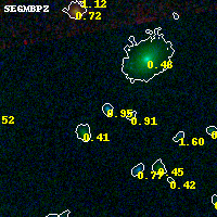 Object #5086 x,y = (3351, 1233) RA, Dec = (00:32:07.680, 18:06:36.72) = (8.03200, 18.11020) BPZ = 0.954 [0.806--1.465] type = 9.30 (SB2_B10 - SB3_B10) chisq2 = 0.01 ODDS = 0.52 z_cluster = 0.396