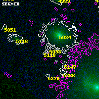 Object #5098 x,y = (1597, 1178) RA, Dec = (00:32:15.072, 18:06:33.48) = (8.06280, 18.10930) BPZ = 0.940 [0.602--2.394] type = 11.00 (SB11_A_0_l) chisq2 = 4.07 ODDS = 0.21 z_cluster = 0.396