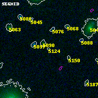Object #5124 x,y = (3409, 1167) RA, Dec = (00:32:07.440, 18:06:32.76) = (8.03100, 18.10910) BPZ = 0.421 [0.192--4.062] type = 8.00 (SB1_B10) chisq2 = 0.35 ODDS = 0.10 z_cluster = 0.396