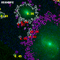 Object #5147 x,y = (1627, 1147) RA, Dec = (00:32:14.928, 18:06:31.68) = (8.06220, 18.10880) BPZ = 10.255 [1.431--10.351] type = 10.00 (SB3_B10) chisq2 = 900.00 ODDS = 0.97 z_cluster = 0.396
