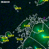 Object #5159 x,y = (3145, 1092) RA, Dec = (00:32:08.544, 18:06:28.44) = (8.03560, 18.10790) BPZ = 0.907 [0.769--1.266] type = 6.60 (Scd_B10 - Sbc_B10) chisq2 = 0.00 ODDS = 0.53 z_cluster = 0.396