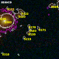Object #5183 x,y = (1878, 1100) RA, Dec = (00:32:13.872, 18:06:28.80) = (8.05780, 18.10800) BPZ = 1.593 [1.023--2.759] type = 10.90 (SB11_A_0_l - SB3_B10) chisq2 = 0.34 ODDS = 0.16 z_cluster = 0.396
