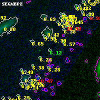 Object #5247 x,y = (3683, 1133) RA, Dec = (00:32:06.288, 18:06:30.96) = (8.02620, 18.10860) BPZ = 6.116 [5.898--6.480] type = 9.40 (SB2_B10 - SB3_B10) chisq2 = 0.00 ODDS = 0.96 z_cluster = 0.396