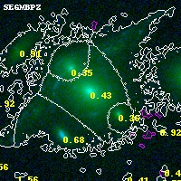 Object #5293 x,y = (3223, 1046) RA, Dec = (00:32:08.208, 18:06:25.56) = (8.03420, 18.10710) BPZ = 0.435 [0.339--0.474] type = 5.10 (ES0_B10 - Sbc_B10) chisq2 = 0.00 ODDS = 0.83 z_cluster = 0.396