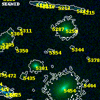 Object #5354 x,y = (2428, 980) RA, Dec = (00:32:11.568, 18:06:21.60) = (8.04820, 18.10600) BPZ = 0.378 [0.154--3.221] type = 10.30 (SB3_B10 - SB11_A_0_l) chisq2 = 0.04 ODDS = 0.05 z_cluster = 0.396