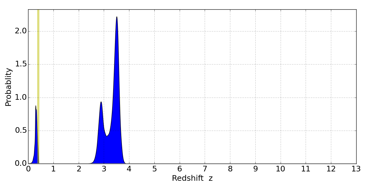 Best viewed in a wide browser window (1200 pixels or more). Download SED & P(z) plots to view larger versions.