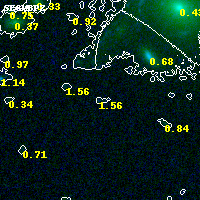 Object #5402 x,y = (3142, 953) RA, Dec = (00:32:08.544, 18:06:20.16) = (8.03560, 18.10560) BPZ = 1.561 [0.623--2.706] type = 10.30 (SB3_B10 - SB11_A_0_l) chisq2 = 0.24 ODDS = 0.13 z_cluster = 0.396