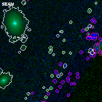 Object #5431 x,y = (3520, 923) RA, Dec = (00:32:06.960, 18:06:18.36) = (8.02900, 18.10510) BPZ = 6.535 [6.311--8.814] type = 9.00 (SB2_B10) chisq2 = 0.00 ODDS = 0.47 z_cluster = 0.396