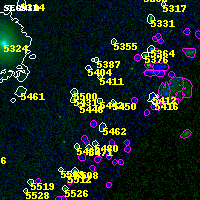 Object #5442 x,y = (3546, 920) RA, Dec = (00:32:06.864, 18:06:18.00) = (8.02860, 18.10500) BPZ = 6.485 [6.240--8.900] type = 9.00 (SB2_B10) chisq2 = 0.00 ODDS = 0.42 z_cluster = 0.396