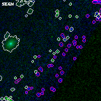 Object #5509 x,y = (3507, 851) RA, Dec = (00:32:07.032, 18:06:14.04) = (8.02930, 18.10390) BPZ = 6.364 [5.984--9.075] type = 9.00 (SB2_B10) chisq2 = 0.00 ODDS = 0.36 z_cluster = 0.396