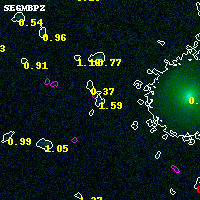 Object #552 x,y = (2838, 4062) RA, Dec = (00:32:09.840, 18:09:26.64) = (8.04100, 18.15740) BPZ = 1.592 [1.231--2.473] type = 11.00 (SB11_A_0_l) chisq2 = 0.65 ODDS = 0.22 z_cluster = 0.396