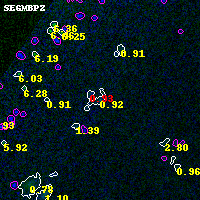 Object #557 x,y = (1517, 4056) RA, Dec = (00:32:15.408, 18:09:26.28) = (8.06420, 18.15730) BPZ = 0.921 [0.151--2.327] type = 10.40 (SB3_B10 - SB11_A_0_l) chisq2 = 0.00 ODDS = 0.14 z_cluster = 0.396