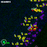 Object #5643 x,y = (3375, 694) RA, Dec = (00:32:07.584, 18:06:04.32) = (8.03160, 18.10120) BPZ = 6.047 [5.821--8.795] type = 9.20 (SB2_B10 - SB3_B10) chisq2 = 0.00 ODDS = 0.52 z_cluster = 0.396