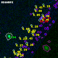 Object #5699 x,y = (3360, 640) RA, Dec = (00:32:07.632, 18:06:01.08) = (8.03180, 18.10030) BPZ = 6.034 [5.842--9.576] type = 9.30 (SB2_B10 - SB3_B10) chisq2 = 0.03 ODDS = 0.73 z_cluster = 0.396