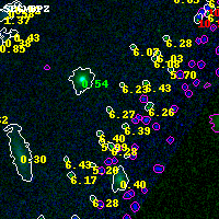 Object #5738 x,y = (3316, 589) RA, Dec = (00:32:07.824, 18:05:58.20) = (8.03260, 18.09950) BPZ = 6.273 [5.991--8.890] type = 8.70 (SB2_B10 - SB1_B10) chisq2 = 0.00 ODDS = 0.45 z_cluster = 0.396