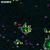 Object #695 x,y = (3173, 3921) RA, Dec = (00:32:08.424, 18:09:18.00) = (8.03510, 18.15500) BPZ = 0.670 [0.262--2.326] type = 7.60 (SB1_B10 - Scd_B10) chisq2 = 0.01 ODDS = 0.16 z_cluster = 0.396