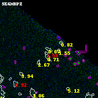 Object #724 x,y = (3396, 3894) RA, Dec = (00:32:07.488, 18:09:16.56) = (8.03120, 18.15460) BPZ = 0.665 [0.260--1.973] type = 8.80 (SB2_B10 - SB1_B10) chisq2 = 0.06 ODDS = 0.13 z_cluster = 0.396