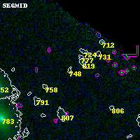 Object #748 x,y = (3375, 3867) RA, Dec = (00:32:07.584, 18:09:14.76) = (8.03160, 18.15410) BPZ = 2.665 [0.232--3.256] type = 9.80 (SB3_B10 - SB2_B10) chisq2 = 0.31 ODDS = 0.14 z_cluster = 0.396