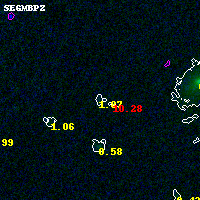 Object #809 x,y = (1498, 3810) RA, Dec = (00:32:15.480, 18:09:11.52) = (8.06450, 18.15320) BPZ = 1.866 [0.226--3.196] type = 9.60 (SB3_B10 - SB2_B10) chisq2 = 0.33 ODDS = 0.11 z_cluster = 0.396