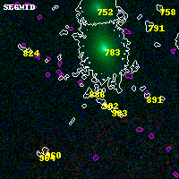 Object #886 x,y = (3262, 3752) RA, Dec = (00:32:08.040, 18:09:07.92) = (8.03350, 18.15220) BPZ = 0.916 [0.593--10.303] type = 8.90 (SB2_B10 - SB1_B10) chisq2 = 5.13 ODDS = 0.26 z_cluster = 0.396