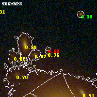 Object #1000 x,y = (2906, 1683) RA, Dec = (00:32:09.552, 18:07:03.72) = (8.03980, 18.11770) BPZ = 4.597 [4.312--4.882] type = 10.00 (SB3_B10) chisq2 = 1.05 ODDS = 0.90 z_cluster = 0.396