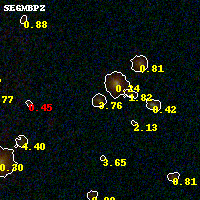 Object #101 x,y = (2681, 3396) RA, Dec = (00:32:10.488, 18:08:46.68) = (8.04370, 18.14630) BPZ = 3.760 [0.368--4.008] type = 8.90 (SB2_B10 - SB1_B10) chisq2 = 0.16 ODDS = 0.63 z_cluster = 0.396
