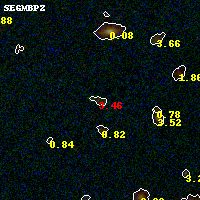 Object #102 x,y = (3176, 3398) RA, Dec = (00:32:08.400, 18:08:46.68) = (8.03500, 18.14630) BPZ = 3.462 [2.949--3.584] type = 9.80 (SB3_B10 - SB2_B10) chisq2 = 2.32 ODDS = 0.68 z_cluster = 0.396