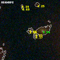 Object #1042 x,y = (2710, 1614) RA, Dec = (00:32:10.368, 18:06:59.76) = (8.04320, 18.11660) BPZ = 0.558 [0.245--4.132] type = 6.60 (Scd_B10 - Sbc_B10) chisq2 = 0.92 ODDS = 0.20 z_cluster = 0.396