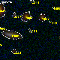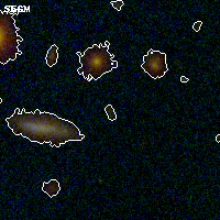 Object #1099 x,y = (2007, 1521) RA, Dec = (00:32:13.344, 18:06:54.00) = (8.05560, 18.11500) BPZ = 3.356 [0.254--4.069] type = 8.90 (SB2_B10 - SB1_B10) chisq2 = 0.44 ODDS = 0.39 z_cluster = 0.396