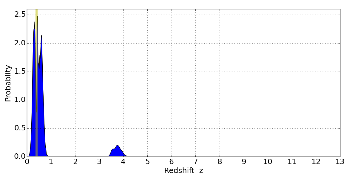 Best viewed in a wide browser window (1200 pixels or more). Download SED & P(z) plots to view larger versions.