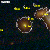 Object #1134 x,y = (3595, 1419) RA, Dec = (00:32:06.648, 18:06:47.88) = (8.02770, 18.11330) BPZ = 0.431 [0.334--0.462] type = 3.70 (Ell4_A_0 - Ell5_A_0) chisq2 = 0.01 ODDS = 0.87 z_cluster = 0.396