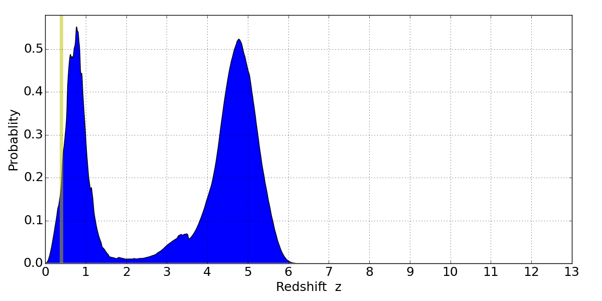 Best viewed in a wide browser window (1200 pixels or more). Download SED & P(z) plots to view larger versions.