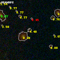 Object #130 x,y = (2604, 3355) RA, Dec = (00:32:10.824, 18:08:44.16) = (8.04510, 18.14560) BPZ = 4.396 [3.970--4.639] type = 9.50 (SB3_B10 - SB2_B10) chisq2 = 0.38 ODDS = 0.81 z_cluster = 0.396